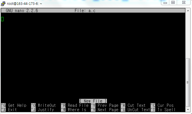 Nano는 하단 부분에 명령어가 표시되어 있으며,^표시는 ctrl 키를 같이 누르라는 뜻입니다. (Ex: ^X == ctrl + X)