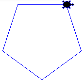 100 픽셀 앞으로 가는 코드와 오른쪽으로 144도 회전하는 코드를 5번 반복하였습니다.