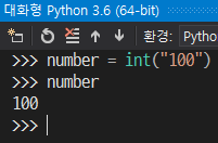 파이썬에서 따옴표를 붙이지 않고 그냥 100이라고 쓰면 이것은 숫자 100을 의미합니다.