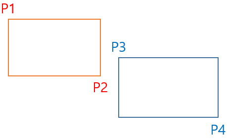 하나의 사각형은 왼쪽 상단 좌표와 오른쪽 하단의 좌표로 정의됩니다. 2개의 사각형이 (P1, P2) 와 (P3, P4) 로 정의되어있다고 가정합시다.