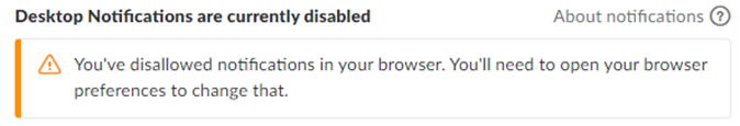 상단에 “Desktop Notifications are currently disabled”가 있다면 브라우저 설정으로 이동하여 알림 차단을 해제해주세요.