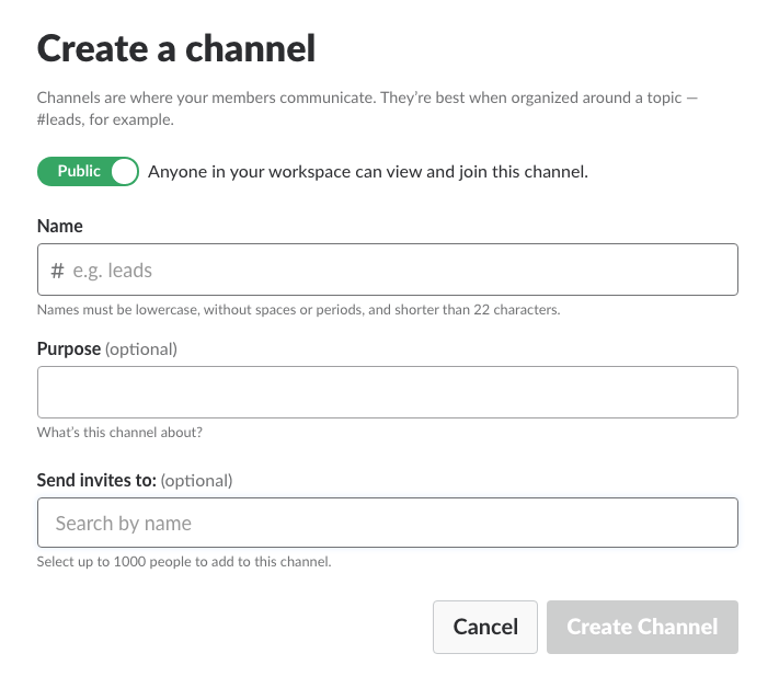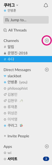 (여기서 잘 보면 Public 채널은 #, Private 채널은 자물쇠 모양의 아이콘을 가지고 있습니다.)