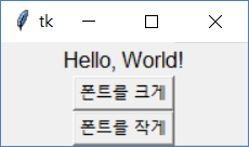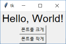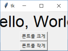 bigger = tk.Button(root, text="폰트를 크게", command=self.BigFont)